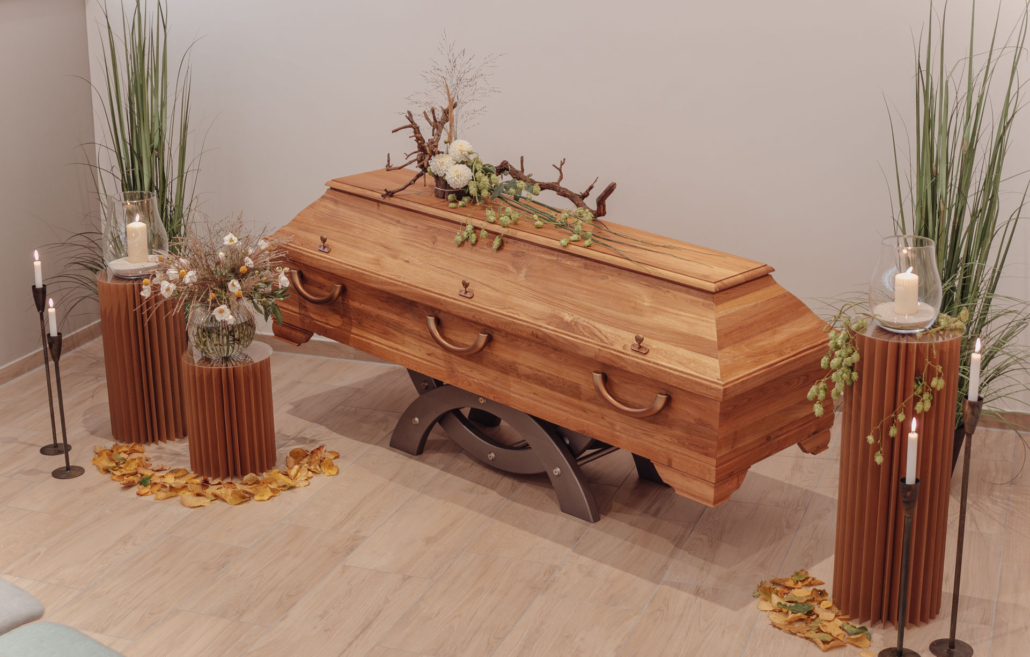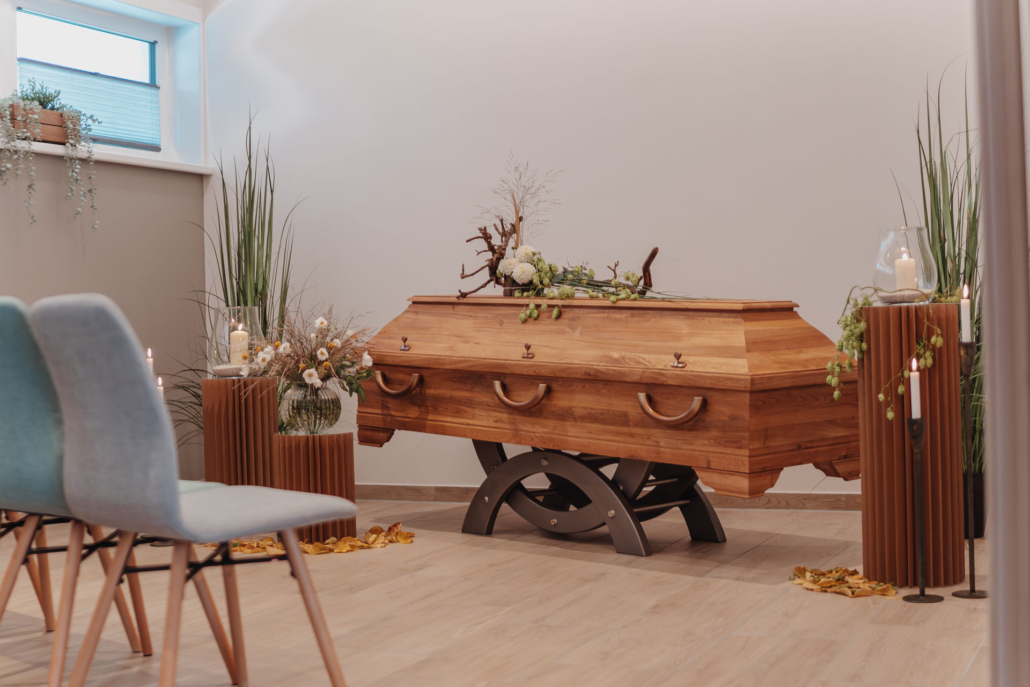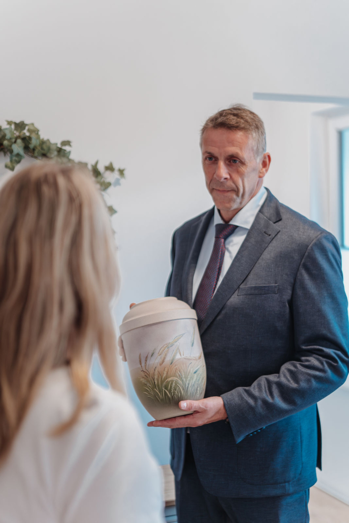 Darüber hinaus können Sie in unserer Urnen- und Sargausstellung die vielfältigen Möglichkeiten für die letzte Ruhestätte kennenlernen und persönlich auswählen, was am Besten zu den Wünschen des Verstorbenen passt. Wir stehen Ihnen dabei beratend zur Seite.